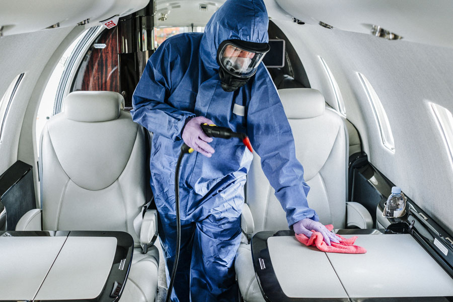 Seats, carpets, sidewalls, flight deck controls, and high-touch areas are cleaned, sanitized, and conditioned.