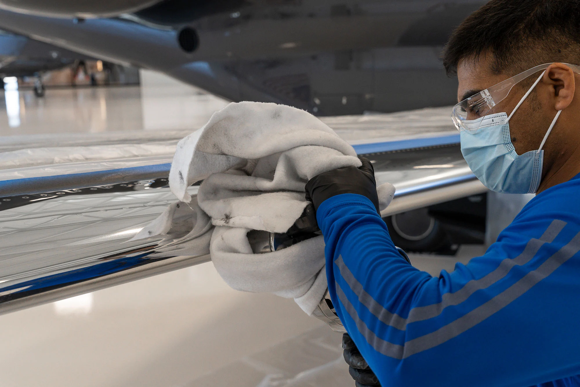 Aviation-grade cleaners are used to remove debris, grease, oil, and contaminants safely.
